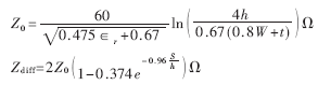 (1)应用微波传输线理论设计差分阻抗Zdiff或利用以下方程设计:
