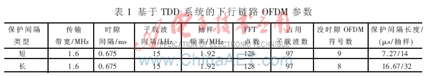 由于OFDM技术的诸多优点,国际上许多公司和科研团体都把它作为增强3G系统性能特别是TD-SCDMA系统性能的方案之一。由CATT、RITT、ZTE、Huawei、TD-tech等共同提出的一种针对TDD LCR系统的增强和演进方案备受人们关注[5]。这种基于E-UTRA TDD系统的下行链路OFDM信道参数如表1所示。