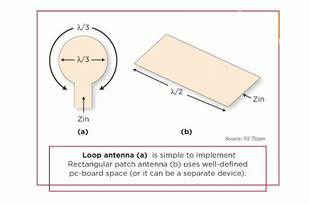 图1:环形天线(a)易于实现。矩形块天线(b)使用规划得很好的PCB空间(它也可是一个分立器件)