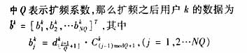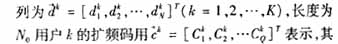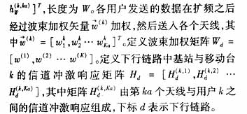 在下行链路中,基站在一个小区内同时发送K个用户的信号,其中第k个用户发送的基带离散序