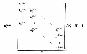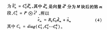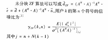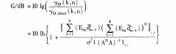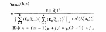为简化信道冲激响应矩阵过程中引入的MAI和ISI。可以推导出第k个用户第m个块中第j个符号的SNR为