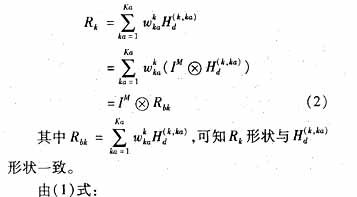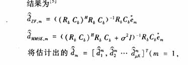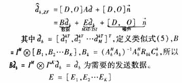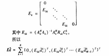 文献[3]中提出了下行链路迫零算法以及均方误差最小化算法,但这种算法只能局限于基站天线为单天线。对于目前TD-SCDMA系统,在基站常常采用8单元天线阵列,所以下行链路采用如下联合检测算法[2]: