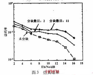 也需要分为M段。在仿真中,我们对12.2 kbps的传送速率进行仿真,每个时隙分为2个22比特数据段,所以仿真中所取的分块数目M为2和11两种情况。