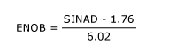 有效位数(ENOB):模数转换器(ADC)与输入频率fIN相关的测试指标(位)。随着fIN的增大,整体噪声(特别是失真成分)将会增大,因而降低了ENOB和SINAD性能。另请参考:信号与噪声 + 失真比(SINAD)。ENOB与SINAD的关系式为: