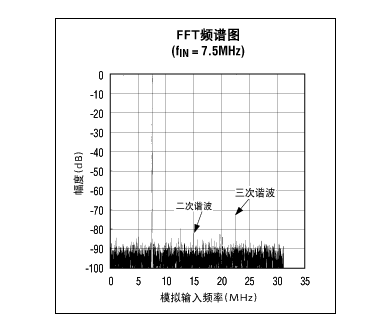 无杂散动态范围(SFDR):正弦波fIN (对于ADC指的是输入正弦波,对于ADC/DAC指的是重建的输出正弦波)的RMS值与在频域观察到的杂散信号的RMS值之比,典型值以分贝表示。SFDR在一些需要最大转换器动态范围的通信系统中非常重要。