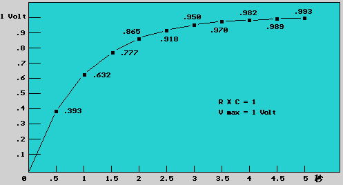 电容式电压随时间 Vc = V * (1- e^(-t / R*C))