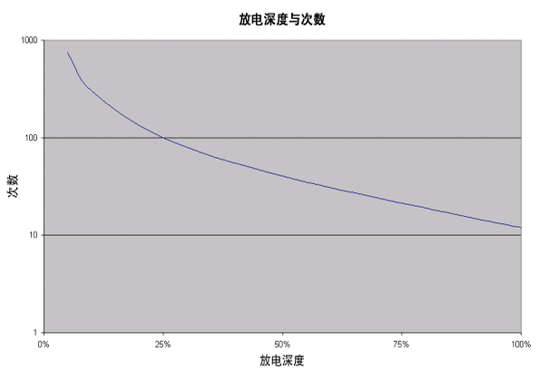 模拟充电/放电次数与放电深度的关系,式中,a、b、c是基于电池测试数据的常数。电池放电时间(小时)乘以使用次数既为总放电时间(小时)。