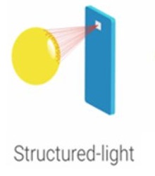 利用 LD 等打出不同的光源图形,光接触到物体后反射回来的会是形变或扭曲的光线图形,再利用红外光感测器,判断该物体的立体结构。是苹果 Face ID、OPPO FaceKey 采用的主要技术。其中结构光包括条纹结构光、编码结构光和散斑结构光。结构光方案的优势来自于技术诞生久,成熟度高,是iPhone X所的采用的典型方案。但是缺点是受到光照的影响大,室内外不同环境下识别效果无法完全保证,这也是结构光根本上的一大问题。