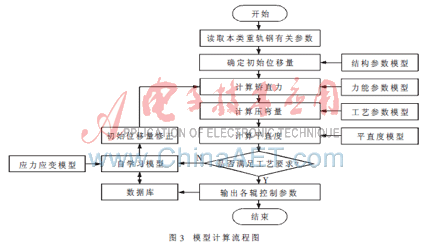 控制工艺模型的基本任务是根据来料条件及对成品的要求,通过数学模型的计算,确定各辊的压下量、矫直力、速度等,以保证获得尽可能符合要求的重轨钢成品[5]。模型计算流程图如图3所示。