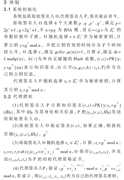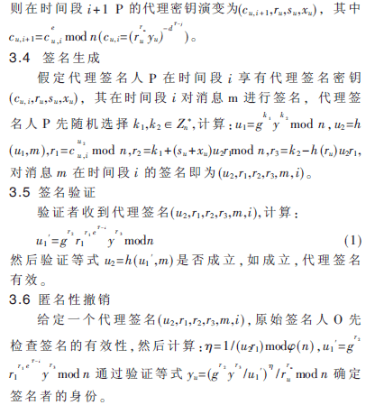 如果原始签名人O希望在时间段j收回P的代理签名权,则只需在回收列表CRL里公布回收信息(cu,j,j)。假如验证者具备在时间段i的签名(u2,r1,r2,r3,m,i)(i>j),首先必须验证签名部分的正确性,然后查询回收列表CRL中是否存在(cu,j,j),若存在,则计算cu,j,并验证r1=cu2u,imod n是否成立,若成立,则表明原始签名人O对代理签名人P的代理签名授权已经被回收。