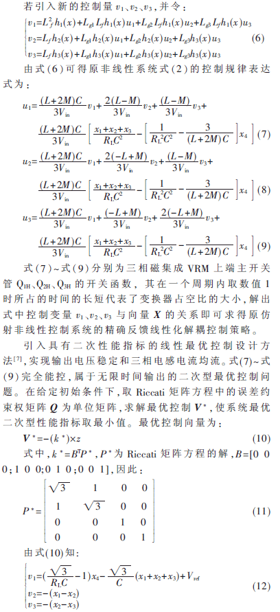 由式(7)~式(9)、式(12)可以得出三相磁集成VRM的精确反馈线性化控制规律。