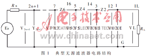 典型的无源滤波器电路组成元件一般按T型结构连接,如图1所示。滤波器的频率特性可以用功率传输函数来定义,即: